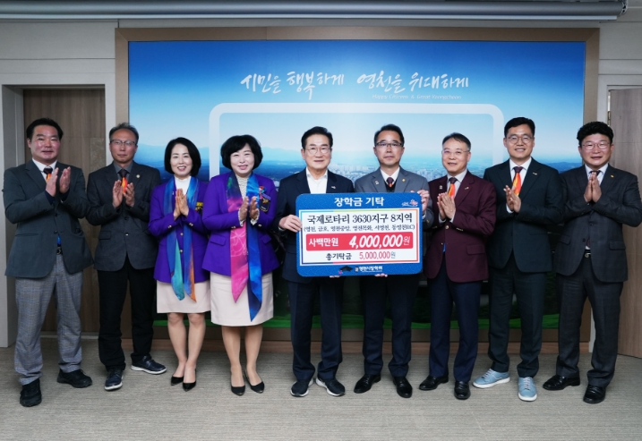 이날 6개 로타리클럽 회장과 8지역 서원기 대표가 뜻을 모아 400만 원의 장학금을 영천시장학회에 기탁했다.
