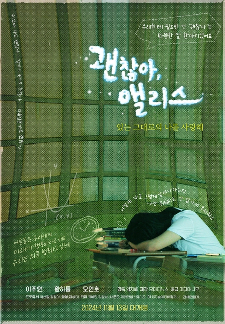 영화 '괜찮아, 앨리스'는 지친 대한민국의 청소년들에게 전하는 따뜻한 위로의 이야기이다. 시험과 경쟁 속에서 스스로를 잃어가는 청소년들에게 ‘있는 그대로의 나를 사랑하라’는 메시지를 전하며, 쉬었다 가도 괜찮고, 다른 길을 선택해도 괜찮다는 희망의 말을 던진다.
