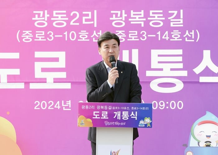 이날 개통한 도로는 차량 교행이 어려운 광동2리 마을현황 도로를 교행이 가능한 왕복 2차로 도로로 확장해 마을 주민의 교통 및 보행환경 개선을 위해 추진했던 사업이다.