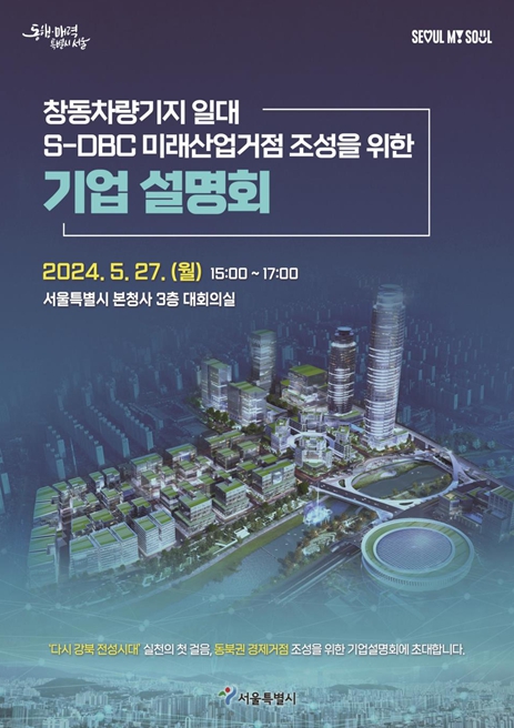 서울시는 5월 27일 15시 서울시청 3층 대회의실에서 ‘창동차량기지 일대 S-DBC(Seoul-Digital Bio City) 기업설명회’를 연다고 밝혔다. 설명회에는 대기업을 비롯해 디지털 바이오·헬스케어 등 미래산업 분야 중견기업 등 약 70개 사가 참석할 예정이다.
