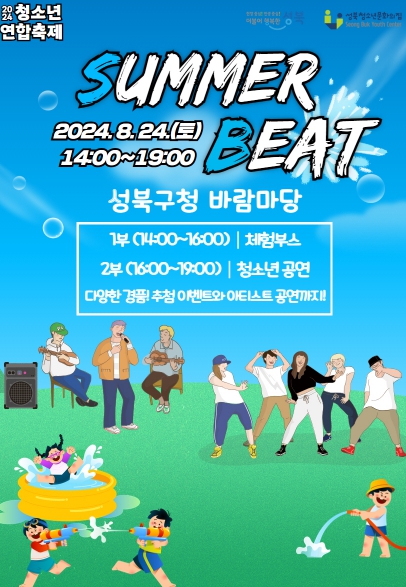[뉴스서치] 서울 성북구가 8월 24일 14시부터 성북구 청소년 연합축제 ‘Summer Beat’를 진행한다고 밝혔다. 청소년들이 직접 기획하고 운영하는 이번 축제는 참여 청소년에게 여름의 더위를 잊고 즐길 수 있도록 다양한 체험과 신나는 공연으로 가득 차 있다.