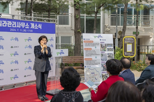 확대 개소식에 참석한 김명희 의장은 “강북구는 아파트보다 빌라와 다세대 주택 비율이 압도적으로 높아 주택의 노후화로 인한 낙후지역이라는 이미지와 재개발의 어려움이 있었다”며, “이러한 어려움 속에 빌라관리사무소라는 창의적인 정책이 도출되어 높은 구민만족도로 운영될 수 있어서 기쁘다”고 말했다.