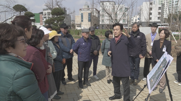 ▲ 진주시, 정촌면 ‘기후대응 도시숲’ 준공현장 점검 |