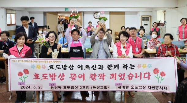 가정의 달을 맞아 열린 이날 행사에는 효도밥상 어르신과 자원봉사자 등 40여 명이 참여해 카네이션 꽃바구니를 만들며 화합을 도모했다.