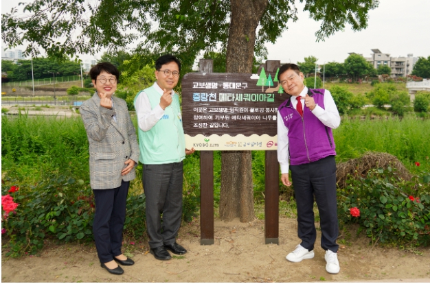 ‘건강한 사회, 함께하는 세상을 만들어 갑니다.’라는 철학을 바탕으로 국내외에서 다양한 사회공헌활동을 해온 교보생명은 지역사회의 환경보호 의식을 높이고, 동대문구의 탄소중립실천을 위해 ‘중랑천 교보생명 메타세쿼이아길’ 조성 사업의 첫걸음을 시작했다.