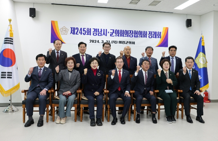 [뉴스서치] 제245회 경남시·군의회의장협의회 정례회가 지난 21일 경남 18개 시ㆍ군의회 의장과 오태완 의령군수, 의령군의회 의원 등 80여 명이 참석한 가운데 의령군 의령읍에 있는 경상남도교육청 미래교육원 회의실에서 개최됐다.