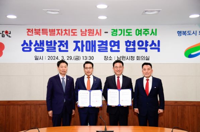 [뉴스서치] 경기 여주시는 전북특별자치도 남원시와 상생발전을 위한 자매결연을 맺었다고 29일 밝혔다.