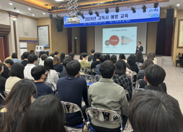 ▲ 강북구가 고독사를 예방하기 위해 구청 대강당에서 2024년 고독사 예방 민관합동 교육을 실시하고 있다. |