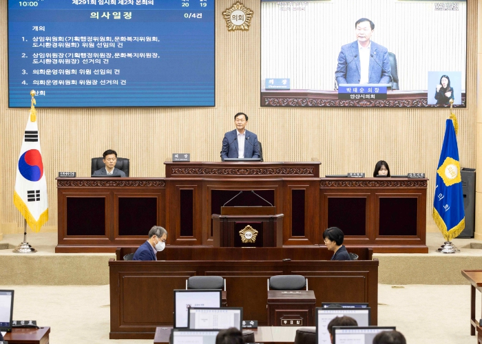 ▲ 안산시의회 의원들이 9대 후반기 의회 출범을 알리는 소통 행보를 시작했다. 제291회 안산시의회 임시회 제2차 본회의 |