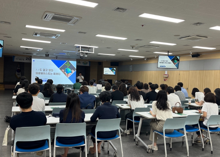 이날 대구환경교육센터와 제로웨이스트 협동조합 세바퀴에서 활동하는 전희택 강사를 초빙해 ‘AI도 안다, 제로웨이스트가 미래다!’를 주제로 제로웨이스트의 의미, 중요성, 실천방법을 함께 살펴봤다.