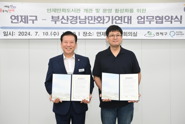 주석수 연제구청장은 “이번 업무협약을 통해 부산경남만화가연대와 함께 지역 만화 인재 양성에 이바지할 예정”이라며 “이를 기반으로 연제만화도서관을 성공적으로 개관하여, 연제구가 부산 만화‧웹툰의 중심지로 자리매김할 수 있도록 노력하겠다”라고 말했다.