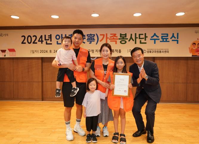 [뉴스서치] 서울 성북구가 지난 24일 성북구청 다목적홀에서"2024년 안녕가족봉사단 수료식"을 개최했다. 이번 수료식에는 총 6회기 중 3회기 이상 참여한 30가족이 수료했다.