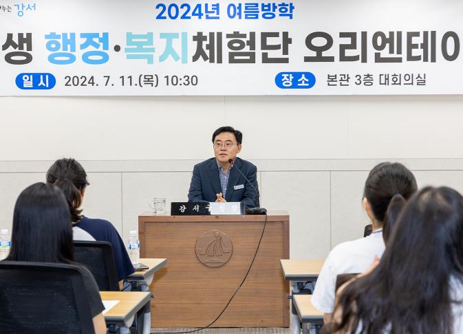 [뉴스서치] 진교훈 강서구청장이 11일 2024년 여름방학 대학생 행정·복지체험단을 격려하고 앞으로의 활동을 응원했다.