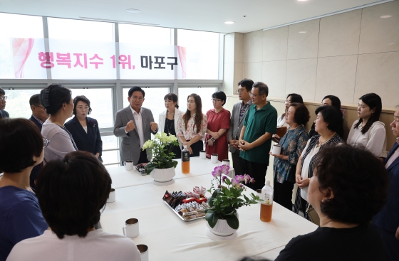 먼저 박강수 마포구청장은 자치회관 프로그램인 ‘가곡 교실’ 현장을 찾아 수강생들에게 안부와 응원의 말을 전했다. 이어 직능단체 회원들과 함께 주요 역점사업 등 지역 현안 사항에 대해 논의하고 소통하는 시간을 가졌다.