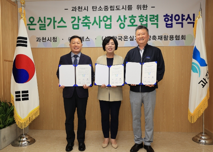협약식에는 신계용 과천시장과 조운제 한국온실가스감축재활용협회 사무처장, 최진흥 빅텍스 대표 등 3개 기관 관계자가 참석했다.