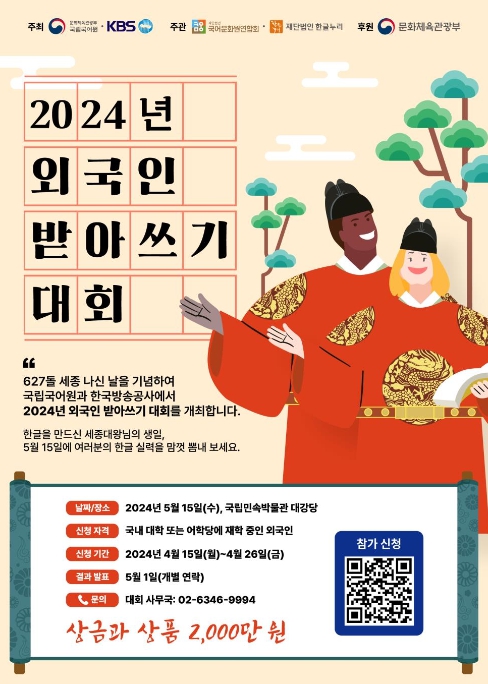 ▲ ‘2024년 외국인 받아쓰기 대회’ 포스터 |