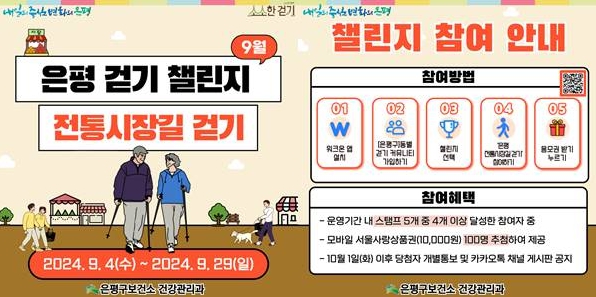 [뉴스서치] 은평는 오는 4일부터 오는 29일까지 ‘은평 전통시장길 걷기’챌린지를 운영한다고 밝혔다.