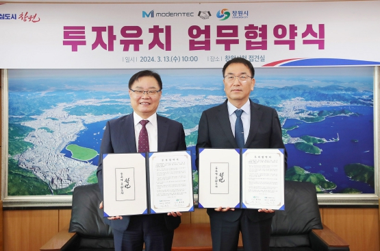 김성두 모던텍 대표는 “시의 적극적 투자유치 활동과 창원의 경쟁력 있는 비즈니스 환경 등을 고려해 이번 투자를 결정했다. 앞으로도 창원 향토기업으로서 지역사회와 더불어 발전할 수 있도록 노력하겠다”고 전했다.