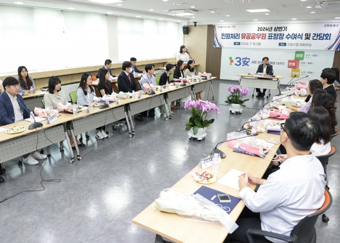 [뉴스서치] 고양특례시는 신속한 민원처리에 기여한 민원처리 공직자를 격려하기 위해 지난 15일 2024년 상반기 민원처리 유공공무원 21명을 선정해 표창하고 민원 담당 공무원과의 간담회를 개최했다고 밝혔다.