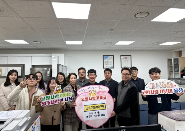 이번 상호 기부는 성주군과 김천시 세무직 공무원 60명(각30명)이 자발적으로 참여해 총 600만원을 기부하며 고향사랑기부제를 응원하고 두 지역의 우호를 다졌다.