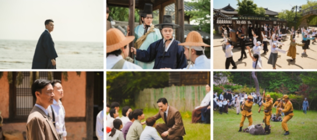 또한 ‘나라 꼴이 기막히니’라는 뮤지컬 넘버의 한 장면이 공개되어 눈길을 사로잡는다. 해당 넘버는 암울했던 일제강점기의 현실을 시사함과 동시에 뮤지컬로 승화된 희망과 연대의 메시지를 담고 있어 영화에 대한 기대를 배가시킨다.