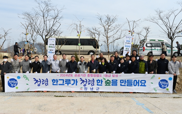 군은 아름다움을 간직한 벚꽃처럼 청렴한 창녕 군정을 활짝 피워 지역민들이 행복하길 바라는 마음에서 수양벚나무를 ‘청렴나무’로 선정, 참석자들과 함께 식수했다.