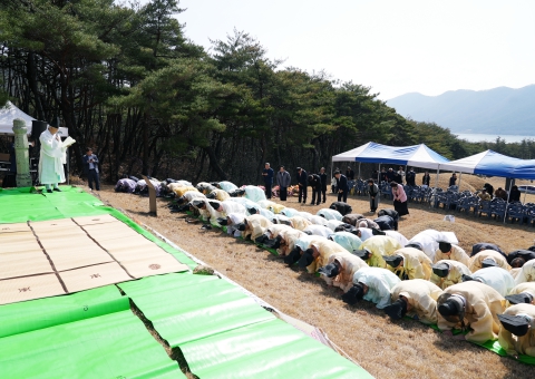 ▲ 27일 자양면 성곡리에 위치한 경상북도 기념물 영천 정의번 시총 앞에서 문화재 지정에 따른 문중 고유제가 엄숙하게 거행됐다. |