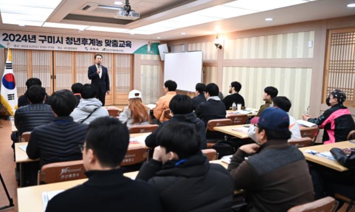 [뉴스서치] 구미시는 27일 선산문화회관에서 청년 농업인, 예비 농업인 등 70여 명이 참석한 가운데 aT농수산식품유통교육원 주관으로‘2024년 청년 농업인 맞춤형 집합교육’을 실시했다.