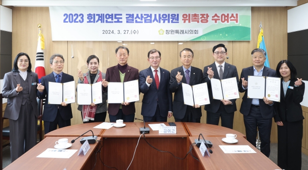 [뉴스서치] 창원특례시의회는 27일 ‘2023회계연도 결산검사위원’을 위촉했다. 손태화 의원이 결산검사 대표위원을 맡았다.