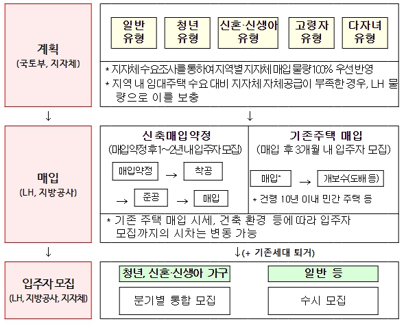특히, 이번 입주자 모집부터'저출산 극복을 위한 주거지원 방안(’23.8월)'에 따라, 신생아 가구를 1순위 입주자로 모집하여 우선공급하며, 명칭도 기존 신혼부부 매입임대주택에서 신혼·신생아 매입임대주택으로 변경한다.