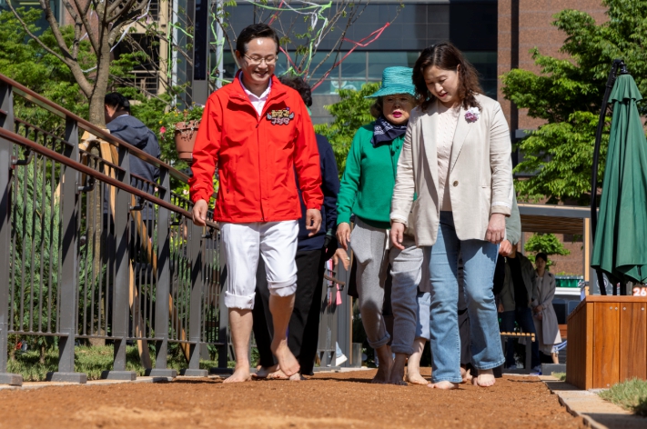 | ▲ 문래동 꽃밭정원의 맨발황톳길 |