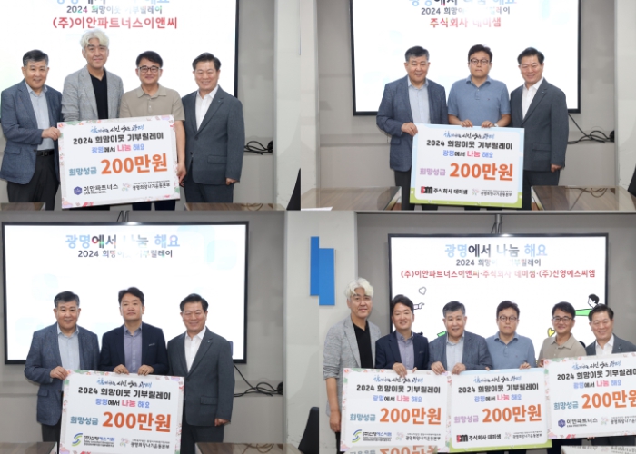 박승원 광명시장은 “어려움을 겪는 광명시민들을 위해 나눔을 실천한 장은영 대표, 김연주 대표, 이관배 대표에게 진심으로 감사하다”며 “경제가 어려운 시기에도 따뜻한 마음을 표현한 만큼 사업도 승승장구하길 바란다”고 말했다.