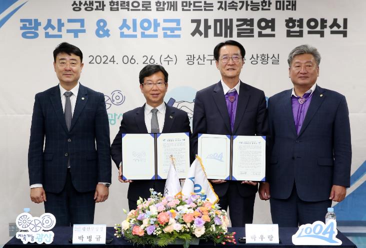 박병규 광산구청장은 “혁신을 지향하는 광산구와 신안군의 자매결연은 그 자체로 우리 지방자치에 큰 의미가 있다”며 “문화와 관광, 도시와 공원, 경제와 우수정책에 이르기까지 전 분야에 대한 협력이 대한민국을 바꾸는 변화와 혁신으로 이어지도록 최선을 다하겠다”고 말했다.
