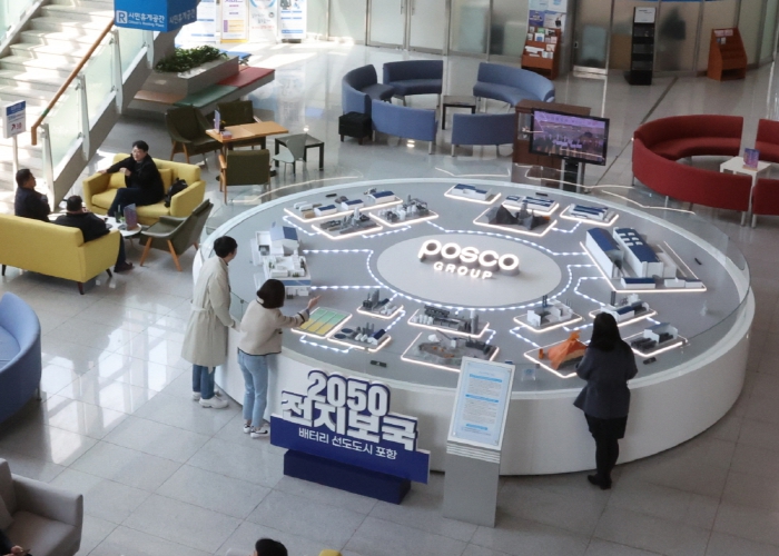 포스코그룹이 추진하고 있는 리튬, 니켈 등 이차전지소재 원료부터 양·음극재와 재활용까지 친환경 자원 순환체계(Closed Loop)를 단계별로 잘 보여주고 있어 시청사를 찾는 시민들에게 색다른 볼거리를 제공하고 있다.