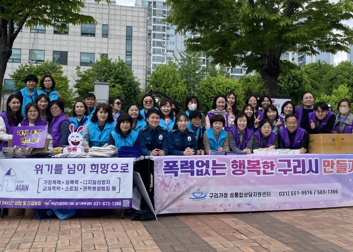 [뉴스서치] 구리시는 지난 24일 구리역 광장에서 ‘폭력 없는 행복한 구리시 만들기’라는 주제로 가정폭력·성폭력 예방 및 불법 촬영 방지 캠페인을 실시했다.
