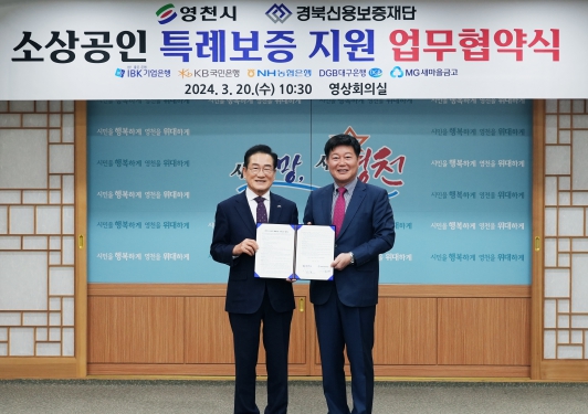 [뉴스서치] 영천시는 20일 경북신용보증재단과 관내 금융기관 관계자 등이 참석한 가운데 2024년 영천시 소상공인 특례보증 및 이차보전사업에 관한 업무 협약을 체결했다.