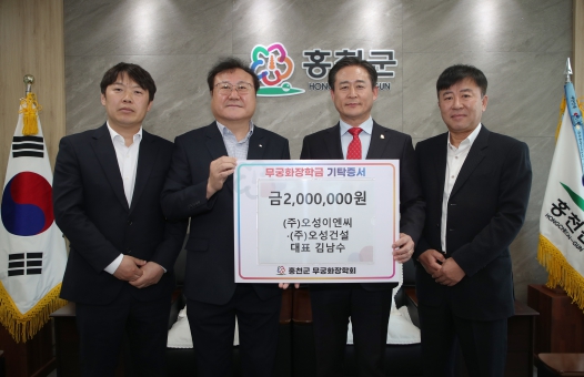 ㈜오성이엔씨·오성건설 김남수 대표는 “홍천군의 향토인재 육성을 위한 무궁화장학금을 기탁하게 됐다.”라고 말하며, “앞으로도 홍천군과 협력하여 지역경제 발전과 홍천군 인재육성에 조금이나마 도움이 될 수 있도록 최선을 다해 노력하겠다.”라고 전했다.