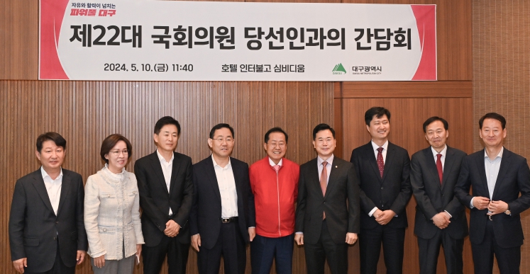 홍준표 대구광역시장은 “대구를 대표하는 국회의원의 중책을 맡으신 만큼 대구를 위한 핵심 현안에 대해 책임감을 가지고 적극적인 목소리를 내실 것을 기대한다”며, “여소야대의 어려운 상황에도 제22대 국회의원 당선인과 힘을 모아 극세척도(克世拓道)의 자세로 한반도 3대 도시 영광을 반드시 되찾도록 하겠다”고 말했다.