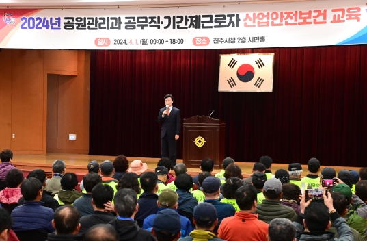 [뉴스서치] 진주시는 1일 시청 2층 시민홀에서 공원관리과에 근무하는 공무직과 기간제근로자 161명을 대상으로 ‘산업안전보건교육’을 실시했다.