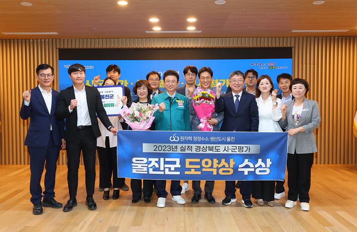 [뉴스서치] 울진군은 지난 13일 ‘2023년 실적 경상북도 시군평가 시상식’에서 실적향상 최우수 시군에 수여하는 도약상을 수상했다.