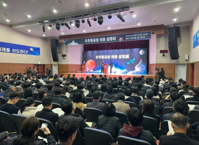 과학기술정보통신부 우주항공청설립추진단은 14일 사천시청 대강당에서 우주항공분야 전문가, 기업인, 대학생 등 400여 명이 참석한 가운데 우주항공청 채용 설명회를 개최했다.