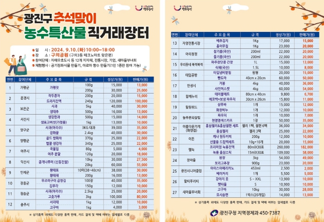 ▲ 10일 열리는 광진구 ‘추석맞이 농수특산물 직거래장터’ 안내문 |
