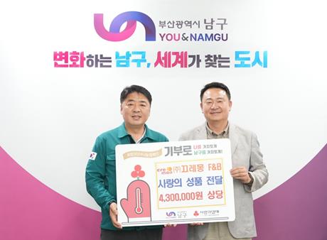 이날 전달한 성품은 부산사회복지공동모금회를 통하여 남구 내 저소득층 및 복지시설에 전달할 예정이다.