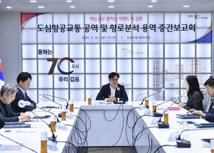 시는 지난 22일 김포시장 주재하에 교통과, 스마트도시과, 기업지원과 등 관련 부서장이 참석한 가운데 ‘도심항공교통 안전운항을 위한 공역 및 항로 분석 용역’ 중간보고회를 개최했다.