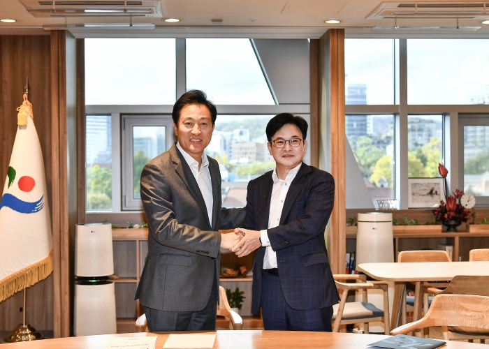 ▲ 지난해 11월 6일 김병수 김포시장이 오세훈 서울시장이 공식 만남을 갖고 공동연구반을 구성하기로 합의했다. |