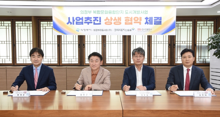 [뉴스서치] 의정부시는 4월 23일 고산동 물류센터를 타 사업으로 전환해 상생발전을 도모하고자 의정부리듬시티(주), 코레이트리듬시티전문투자형사모부동산투자 유한회사 및 ㈜엠비앤홀딩스와 사업추진 협약을 체결했다.