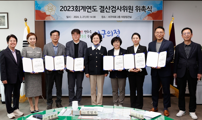 전명자 의장은 위촉장을 전달하면서 “결산검사는 서구 재정을 건전하게 운영하고 효율성과 신뢰성, 투명성을 확보하기 위한 중요한 과정이다”라며 “위원들은 전문성과 오랜 식견을 바탕으로 성실하게 수행해 주기를 바란다”고 당부했다.