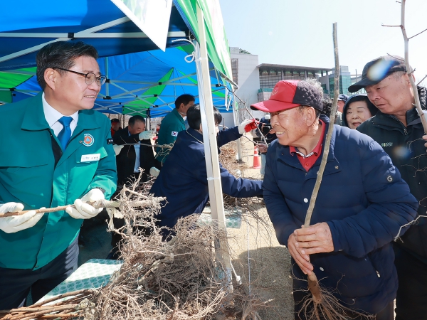 선착순 무료로 배부된 이날 행사는 수많은 군민들이 찾아와 가정 등에 심을 나무를 1인당 묘목 3본과 야생화 1본을 받아 가는 등 큰 호응 속에 진행됐다.
