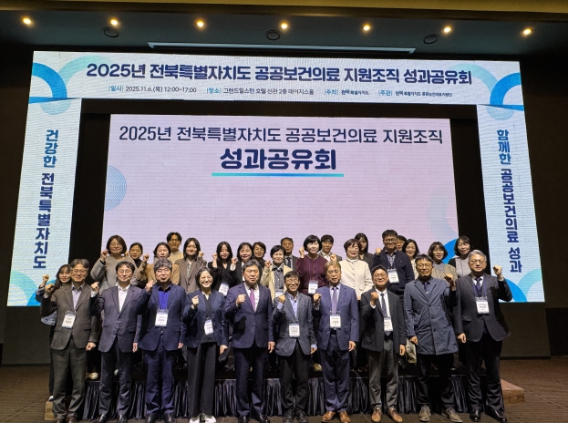 [뉴스서치] 전북특별자치도는 6일 전주 그랜드힐스턴호텔에서 공공보건의료지원단과 공공보건의료 수행기관 관계자 100여 명이 참석한 가운데 ‘2025년 전북특별자치도 공공보건의료 지원조직 성과공유회’를 개최했다.