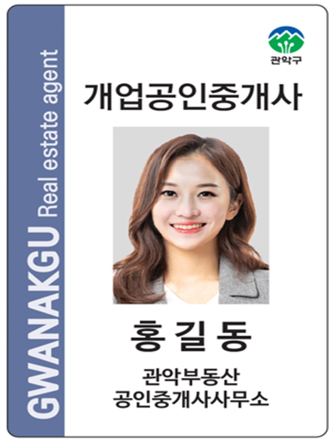 구가 배부한 개업공인중개사 명찰은 개업공인중개사의 사진, 성명, 중개업소 상호가 표기되어 있는 신분증으로, 이를 통해 부동산 중개업소를 찾는 방문객들은 개업공인중개사 여부를 확인 할 수 있다.